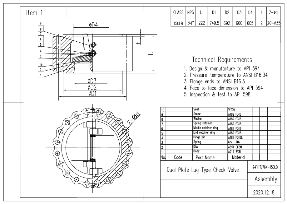 2. Het wafelontwerp met dubbele plaat van het lug-type voldoet aan API 594, waardoor compacte installatie en effectieve terugstroompreventie wordt geboden.