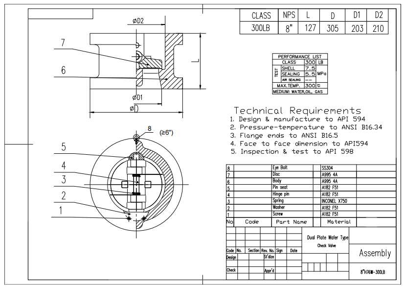 2. Ontworpen aan API 594-normen, maakt de wafelsstructuur met dubbele plaat compacte installatie en betrouwbare niet-returnprestaties onder de druk van 300 pond mogelijk.