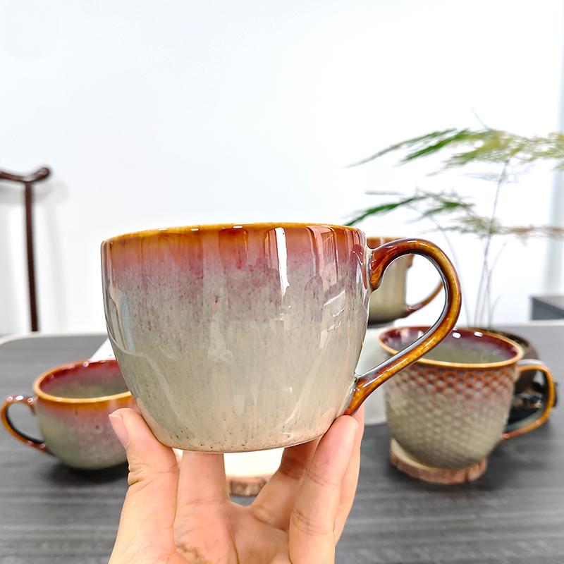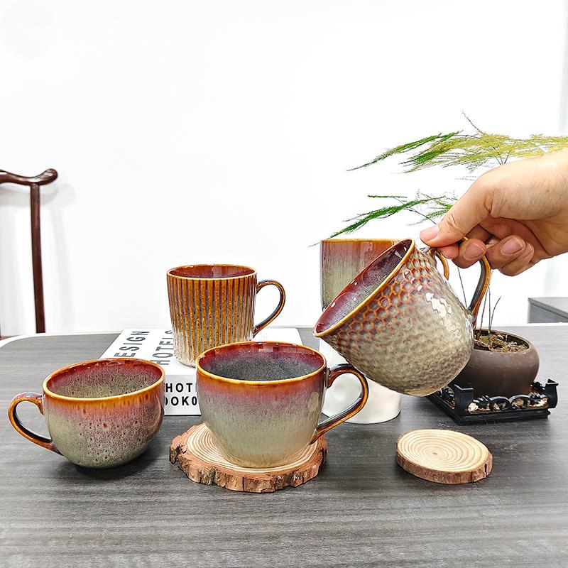 Aangepast Logo Koffie Cup Handgemaakte Reactive Glaze keramische mokken Japanse stijl Pottery Tea Cup -cadeau